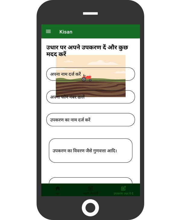 larger consumer market to sell their crops directly to the customer removing the middleman to have high profitability, This same app allows big farmers to lend there machinery to small farmers on an hourly bases, So that farmers can have